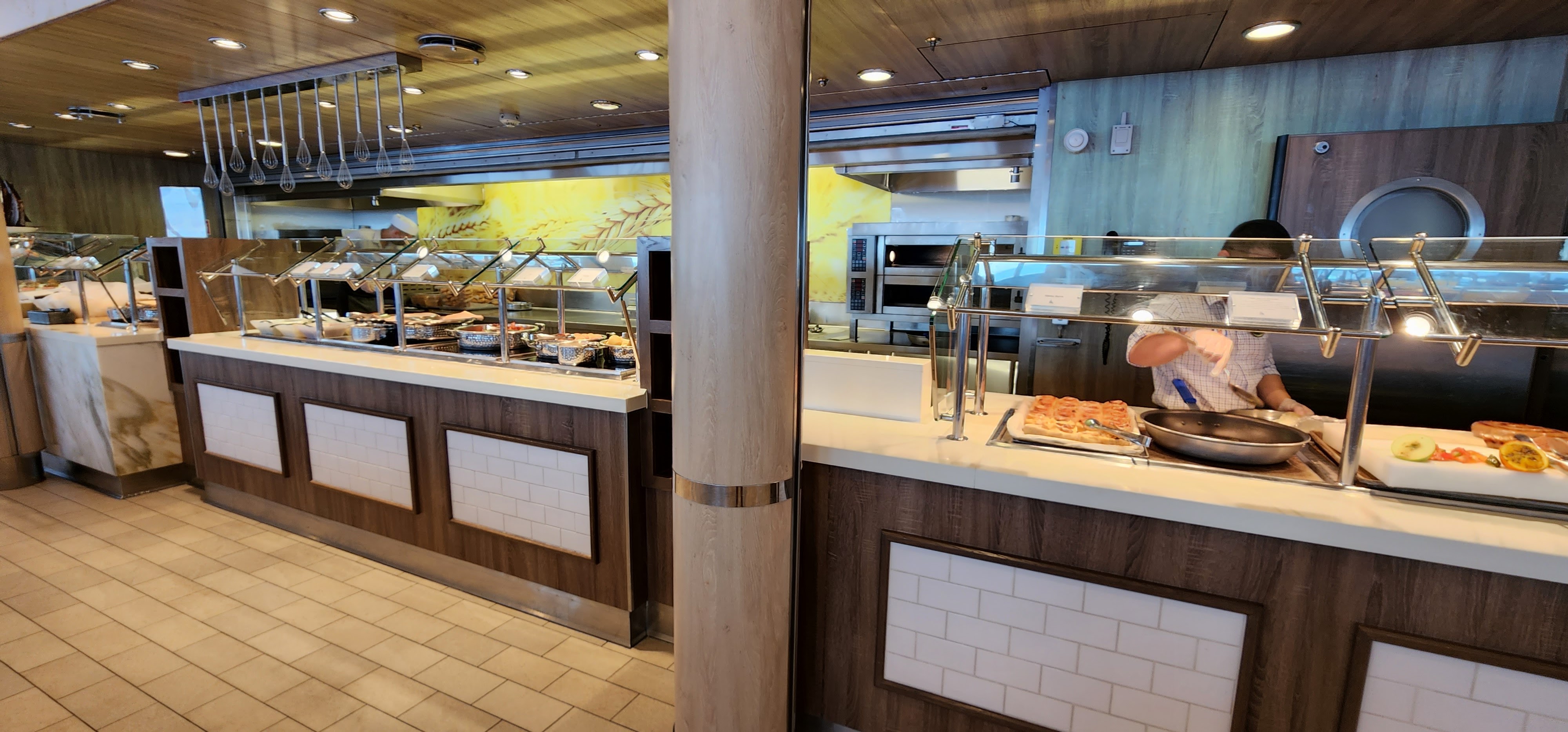 I came in the Windjammer once, to take pictures and to grab a quick bite to take back to our room. We try to avoid the buffet's for the most part. I've personally never been a fan of Royal's buffet, felt it lacks in the selections they offer, and what they do offer isn't always the best. Even grabbing a hot dog, had hard stale bread that I could have used for a salad. Also just got jammed packed full of people and on sea days would only be half opened. So yeah, we just stay clear.