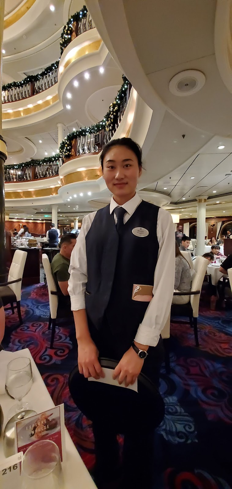 As far as service throughout the ship, dining was our best for dinner. Our waiter and assistant waiters were both AMAZING! Loved them so much, really great people. Had one bad service at breakfast (different person), other than that great. Stateroom steward was okay, saw him here and there. Also felt Royal is cutting back on the little things. One example was the notepad and pen in the room, where was it!?!? Also why are we paying for room service now? Ugh!!!